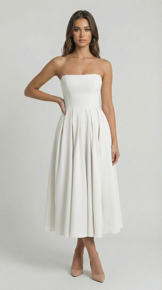Elegant Strapless A-Line Midi Dress – Summer Holiday Party Dress