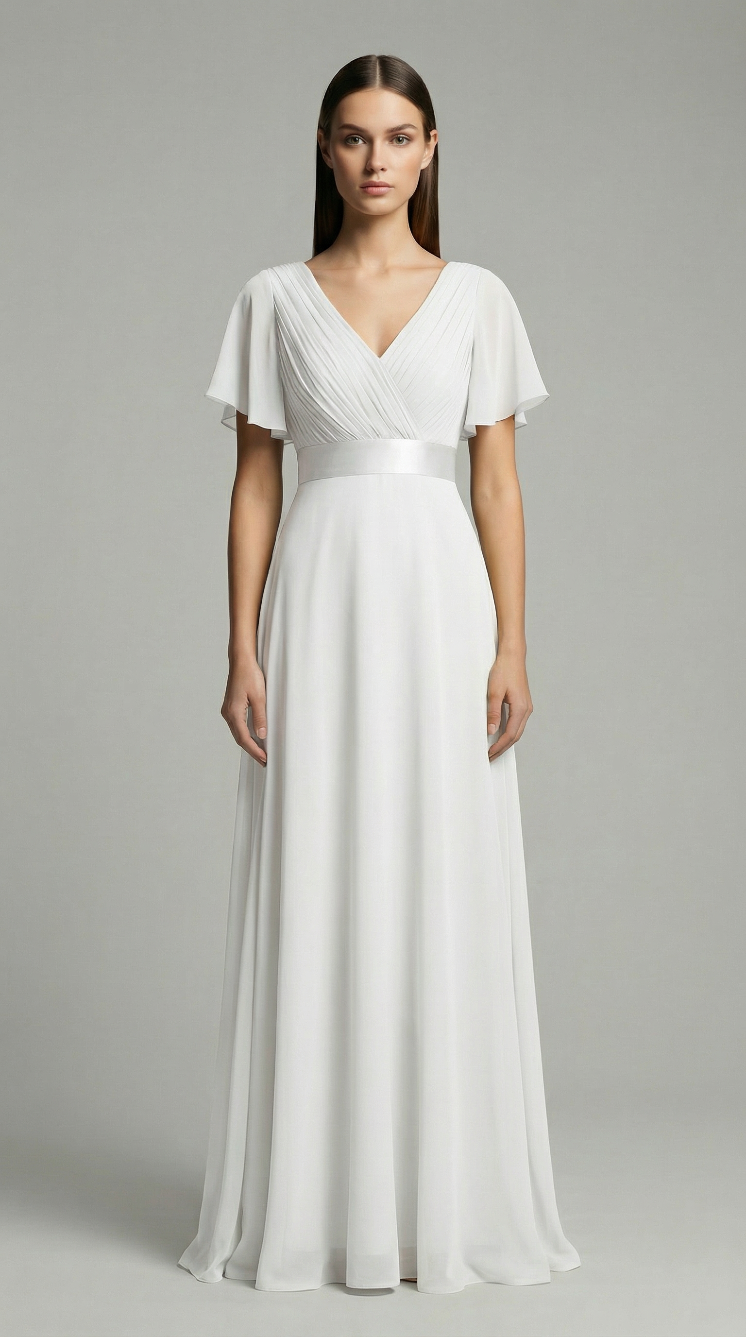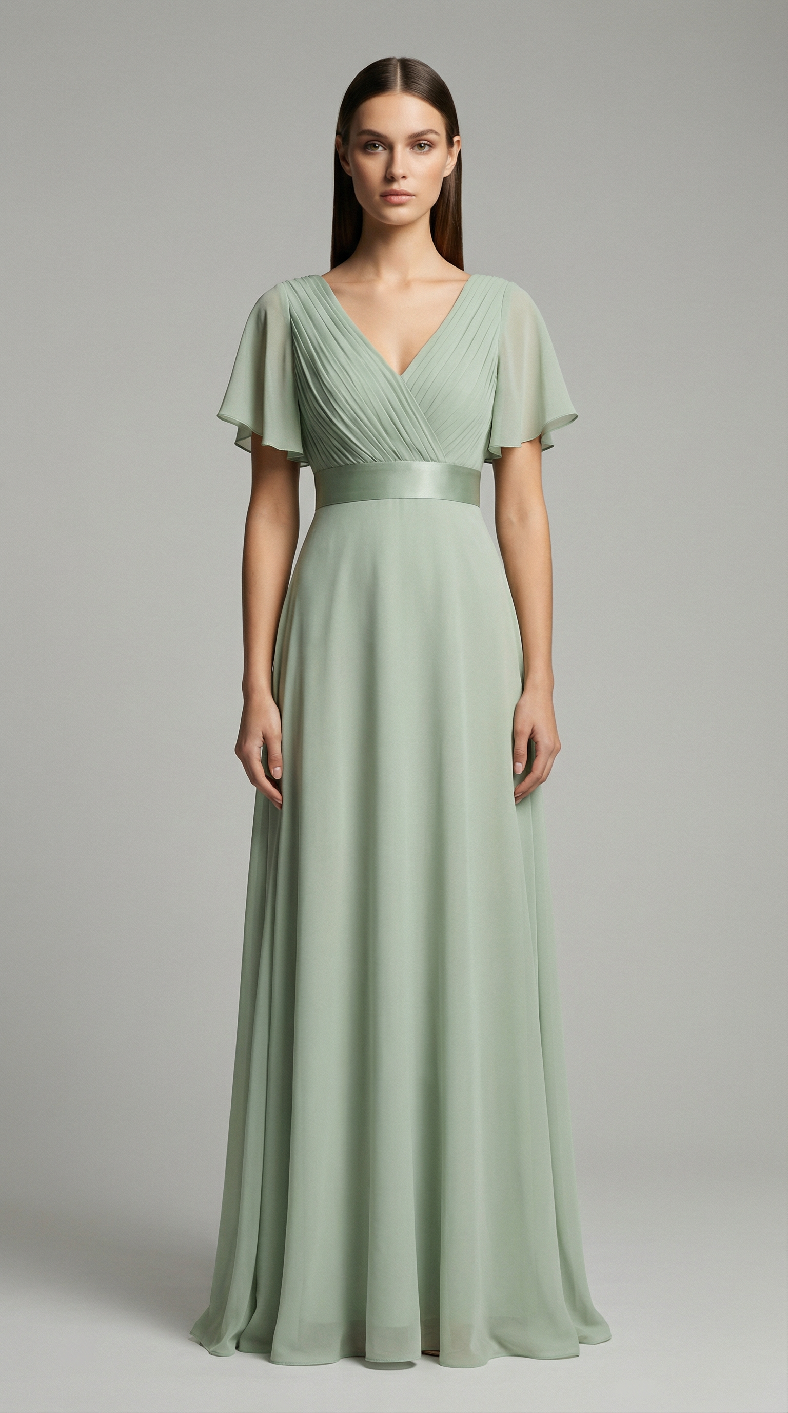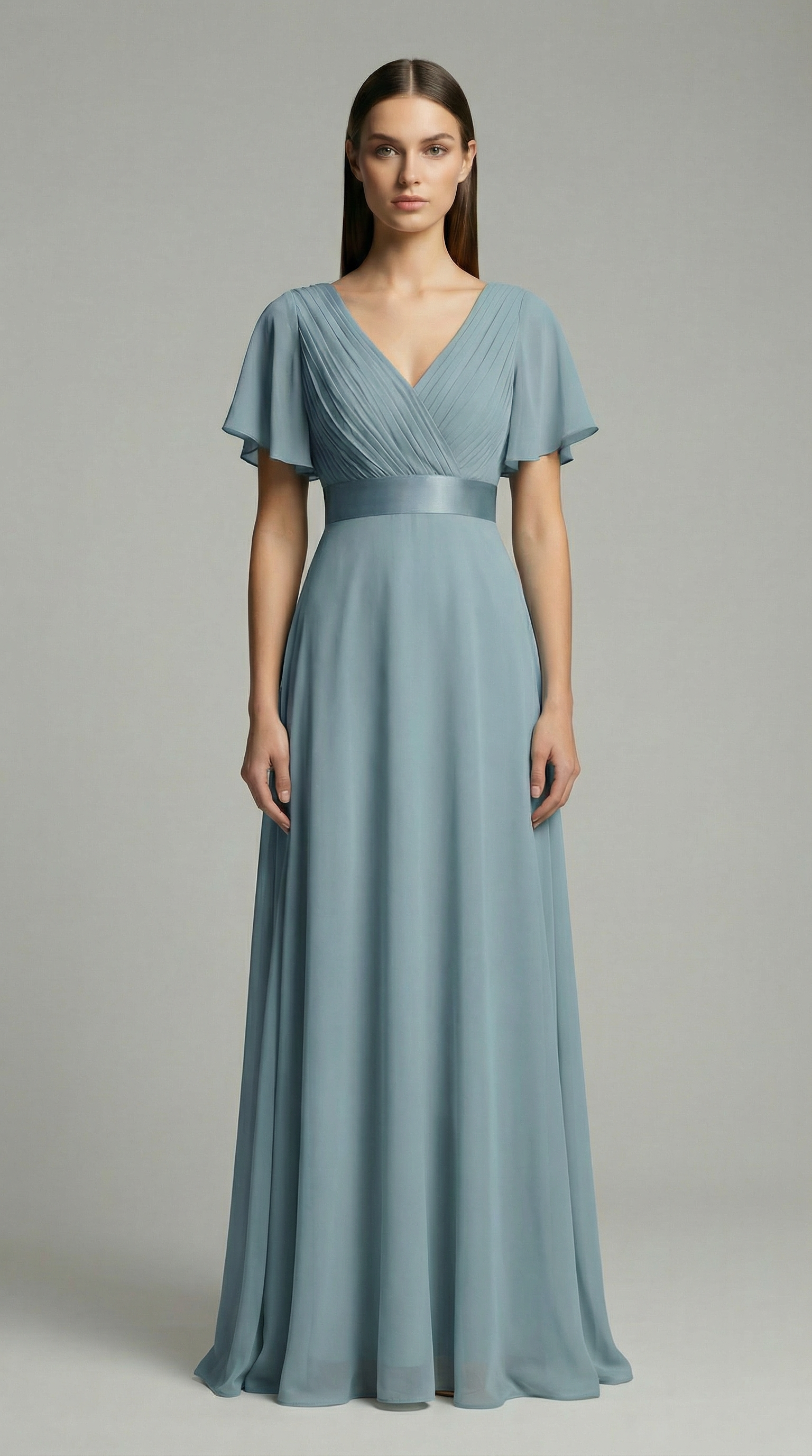 Elegant V-Neck Chiffon Maxi Evening Dress with Flutter Sleeves
