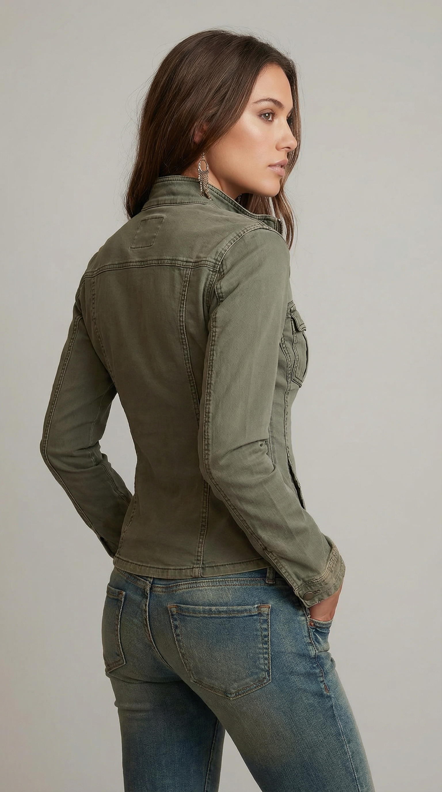• Zipper Front: The bold front zipper adds a modern touch and allows for customizable style and fit.